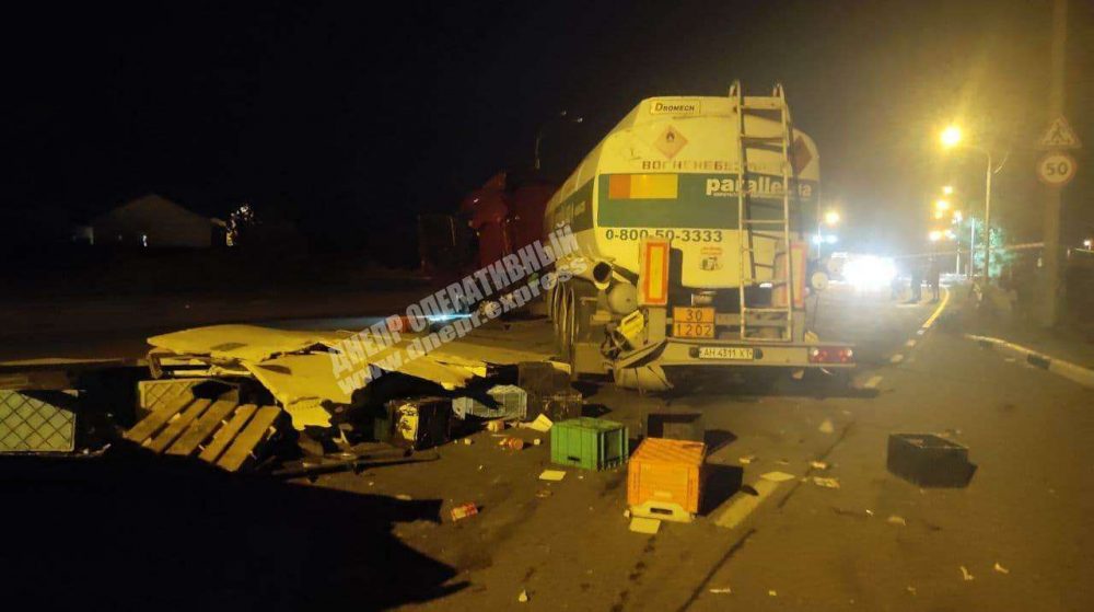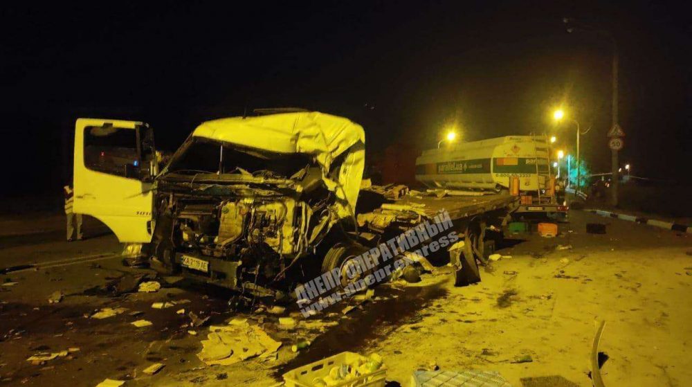 17 августа примерно в 20:30 в Днепре на Полтавском шоссе произошло массовое ДТП с участием четырех грузовых автомобилей. По предварительной информации, один из грузовиков выехал на полосу встречного движения, где в итоге столкнулась с тремя другим грузовыми автомобилями.